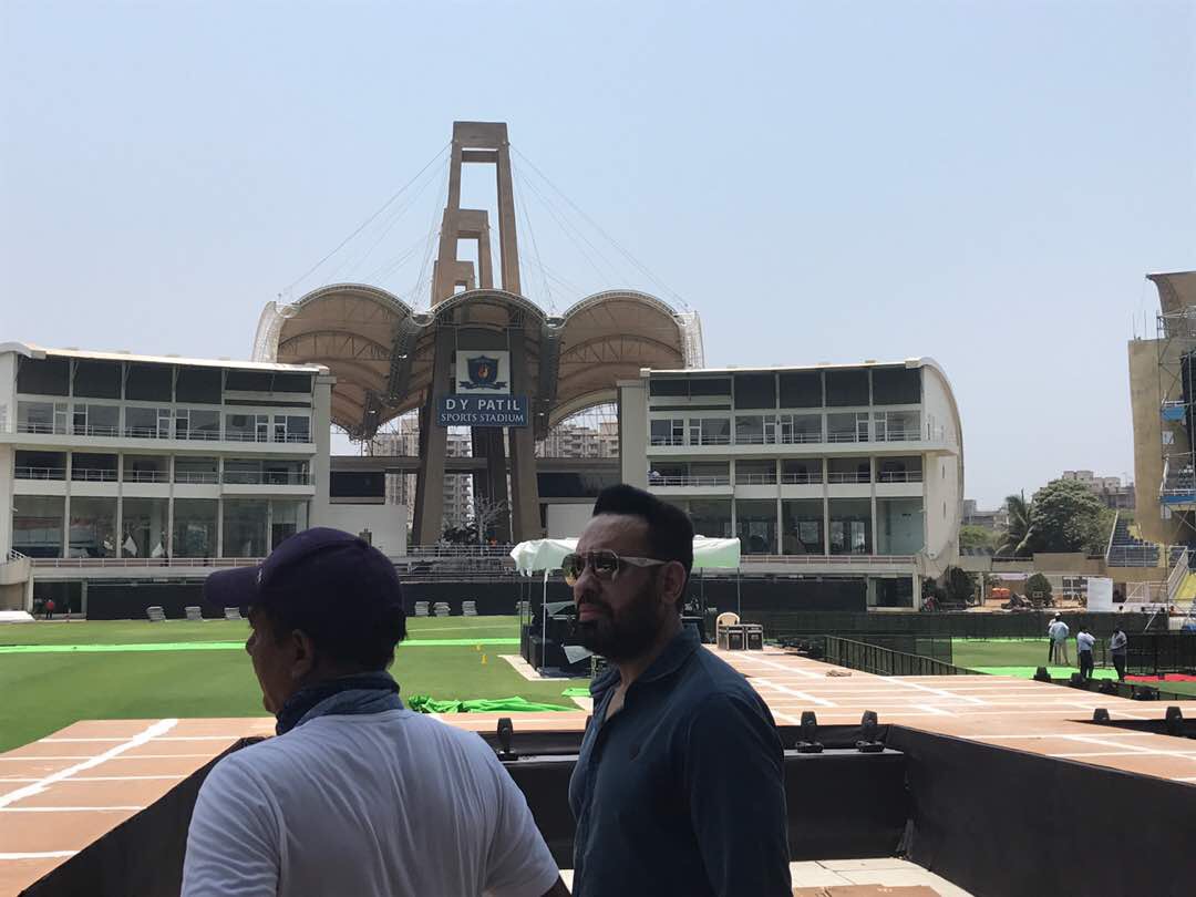 Shera (R) at a recce at the DY Patil Stadium for the Justin Bieber show