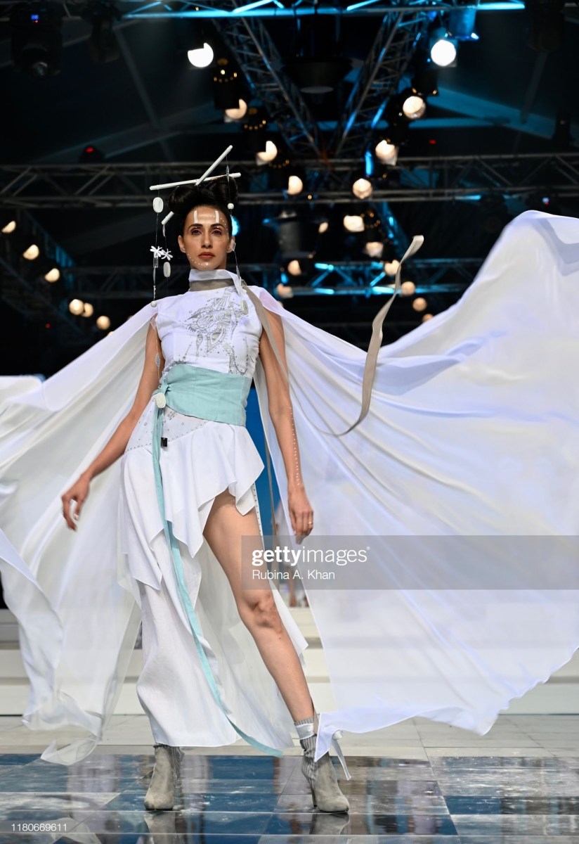 NEW DELHI, INDIA – OCTOBER 12: Schulen Fernandes for Wendell Rodricks’ Zentangle collection at Lotus Make-Up India Fashion Week’s Spring Summer 2020 Finale presented by the FDCI on October 12, 2019 in New Delhi, India. (Photo by Rubina A. Khan/Getty Images)