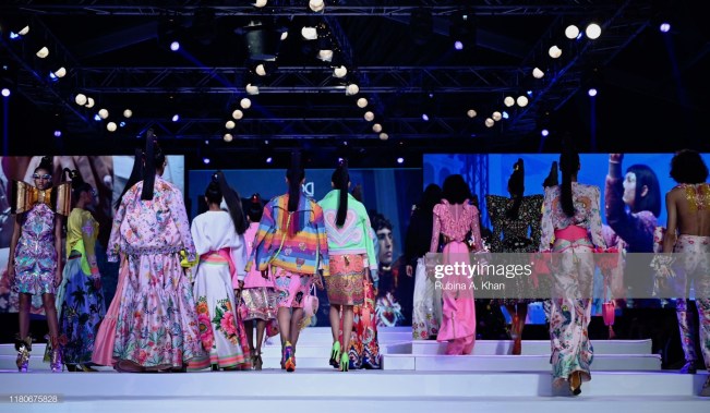 NEW DELHI, INDIA – OCTOBER 12: Manish Arora’s collection at Lotus Make-Up India Fashion Week’s Spring Summer 2020 Finale presented by the FDCI on October 12, 2019 in New Delhi, India. (Photo by Rubina A. Khan/Getty Images)