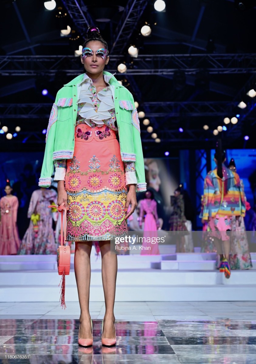 NEW DELHI, INDIA – OCTOBER 12: Manish Arora’s collection at Lotus Make-Up India Fashion Week’s Spring Summer 2020 Finale presented by the FDCI on October 12, 2019 in New Delhi, India. (Photo by Rubina A. Khan/Getty Images)