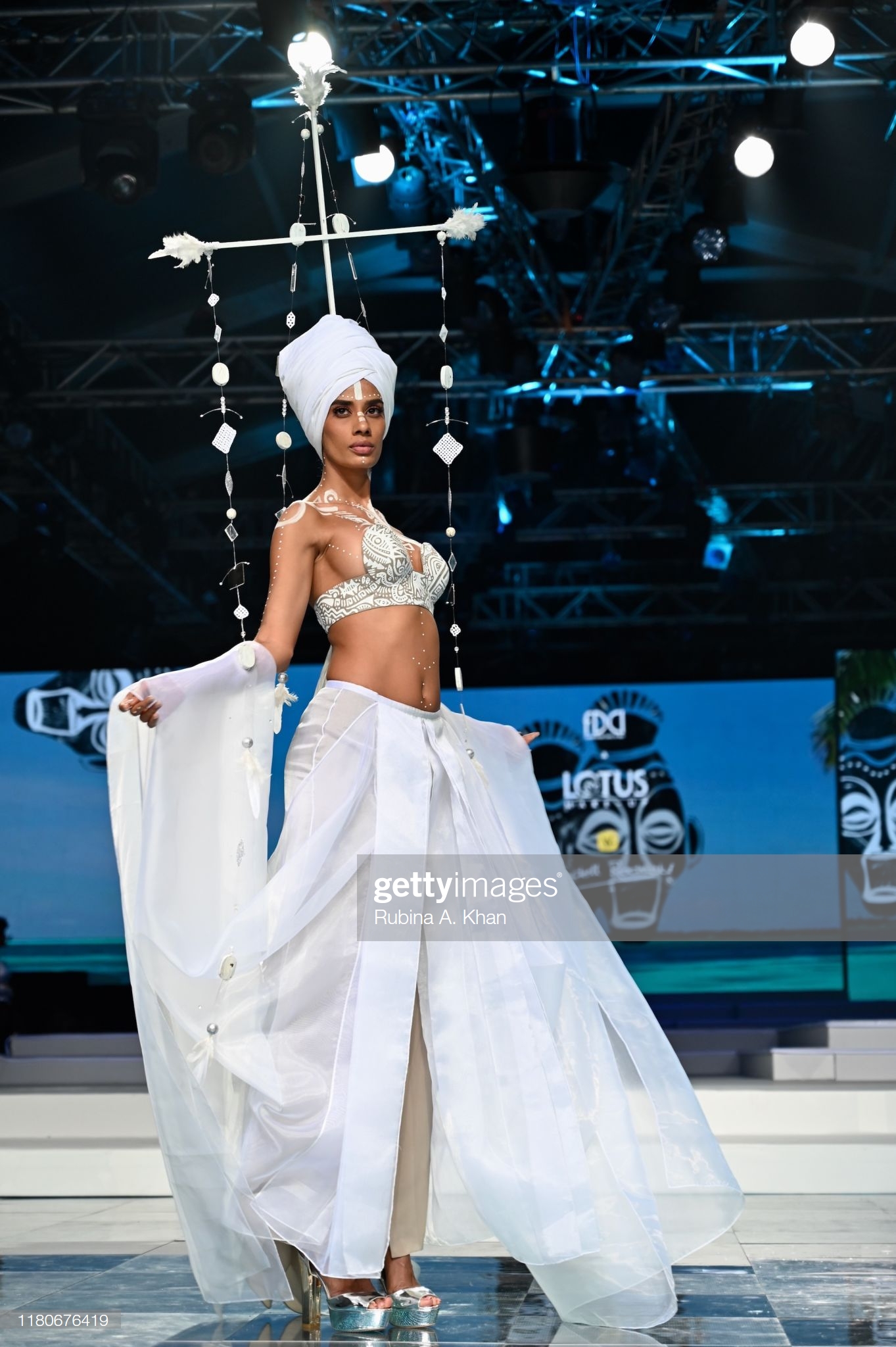 NEW DELHI, INDIA – OCTOBER 12: Schulen Fernandes for Wendell Rodricks’ Zentangle collection at Lotus Make-Up India Fashion Week’s Spring Summer 2020 Finale presented by the FDCI on October 12, 2019 in New Delhi, India. (Photo by Rubina A. Khan/Getty Images)