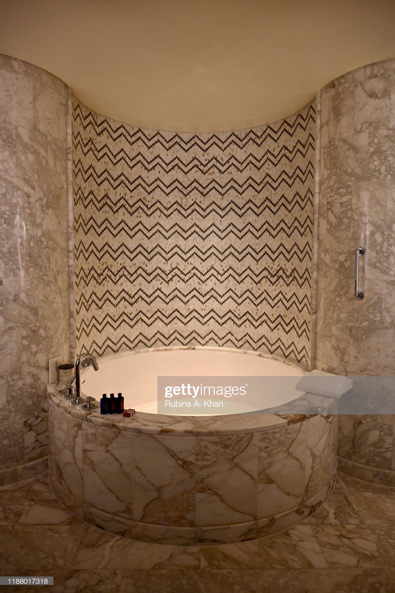 DOHA, QATAR – NOVEMBER 15: The marble bath tub designed in the seafaring theme of the Mandarin Oriental Doha on November 15, 2019 in Doha, Qatar. (Photo by Rubina A. Khan/Getty Images)
