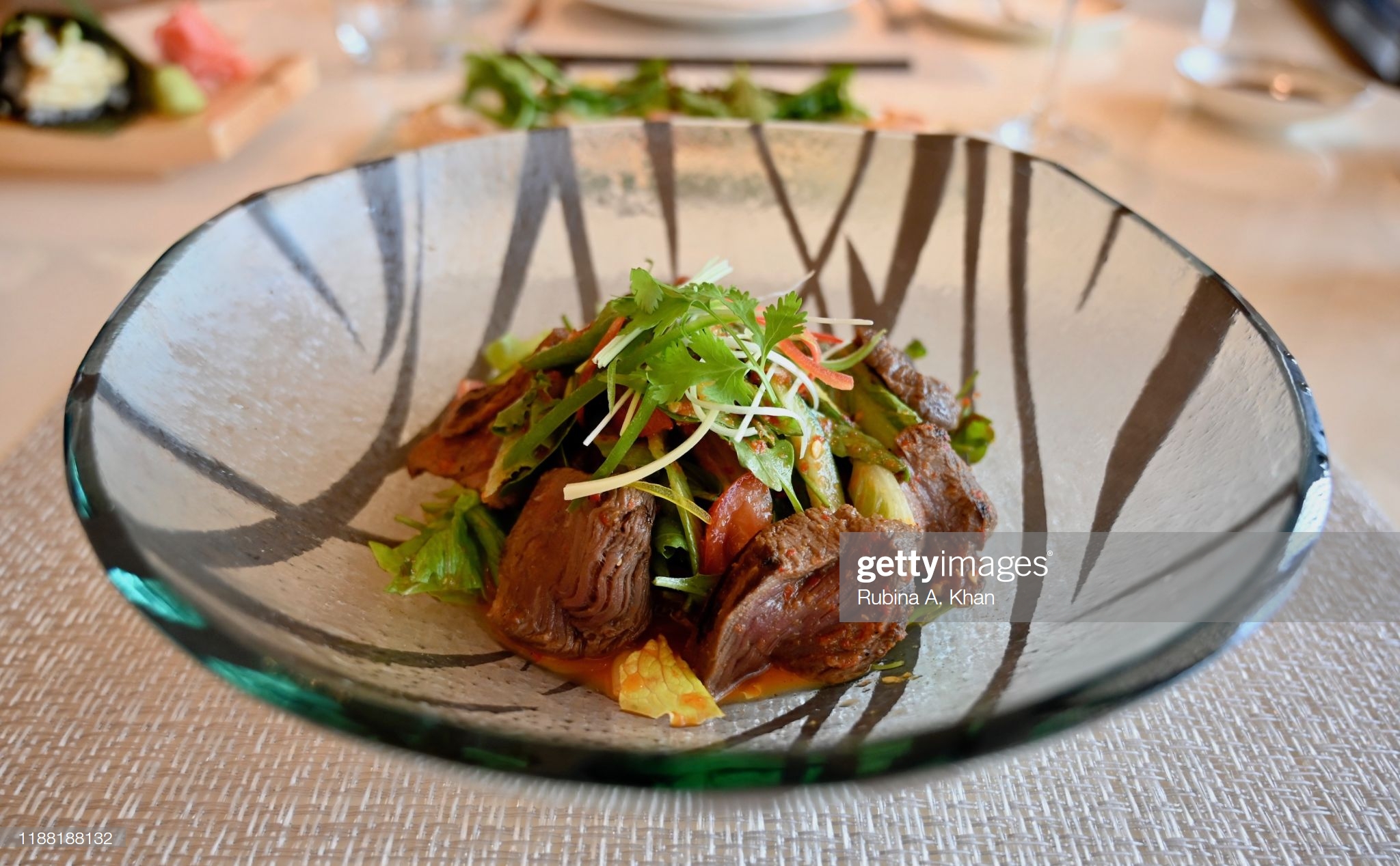 DOHA, QATAR – NOVEMBER 15: A Thai Beef Salad at Mosaic, the speciality nine-kitchen restaurant at the Mandarin Oriental, Doha on November 15, 2019 in Doha, Qatar. (Photo by Rubina A. Khan/Getty Images)