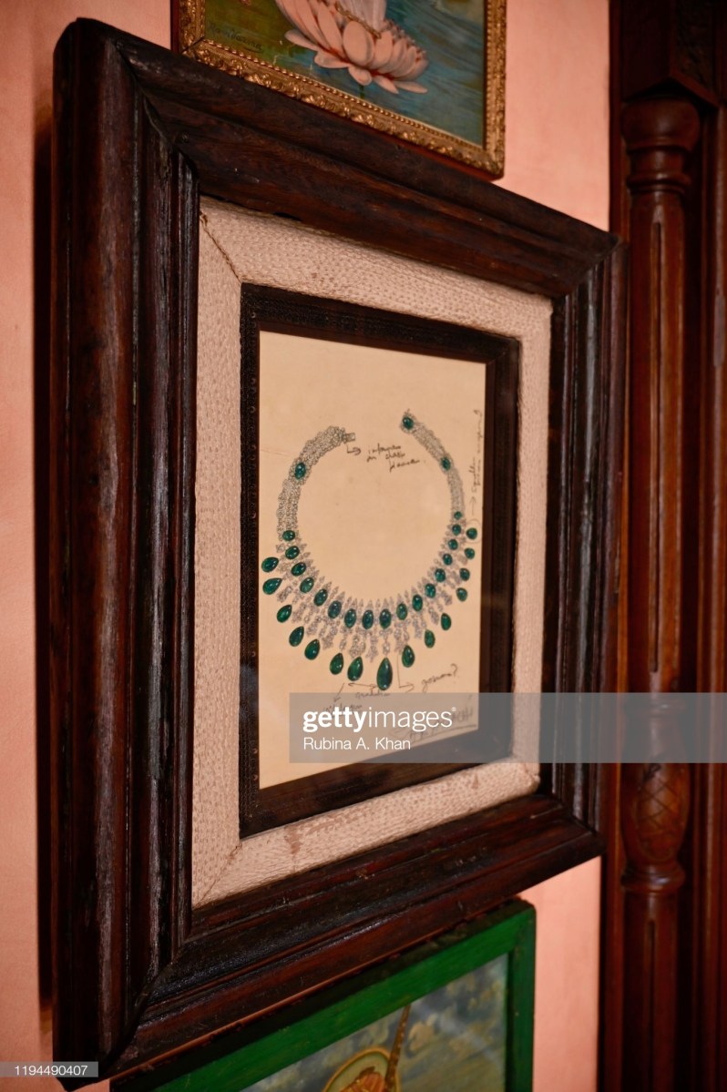 MUMBAI, INDIA – DECEMBER 17: Jewelry sketches by Indian couturier and jewelry designer, Sabyasachi, framed on the walls as conversational art at Sabyasachi Jewelry, his first flagship jewelry store in the country on December 17, 2019 in Mumbai, India. (Photo by Rubina A. Khan/Getty Images)